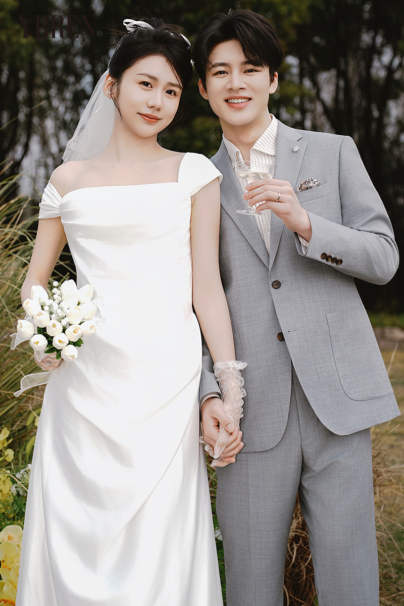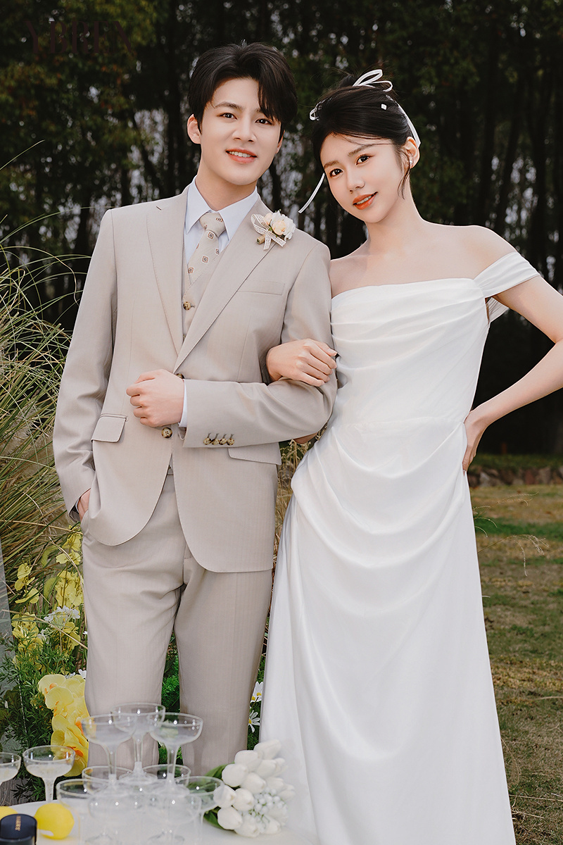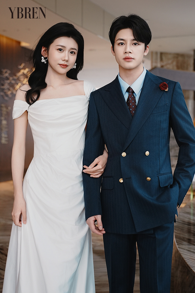 浅蓝色斜纹平驳领羊毛混纺轻奢礼服三件套 国产