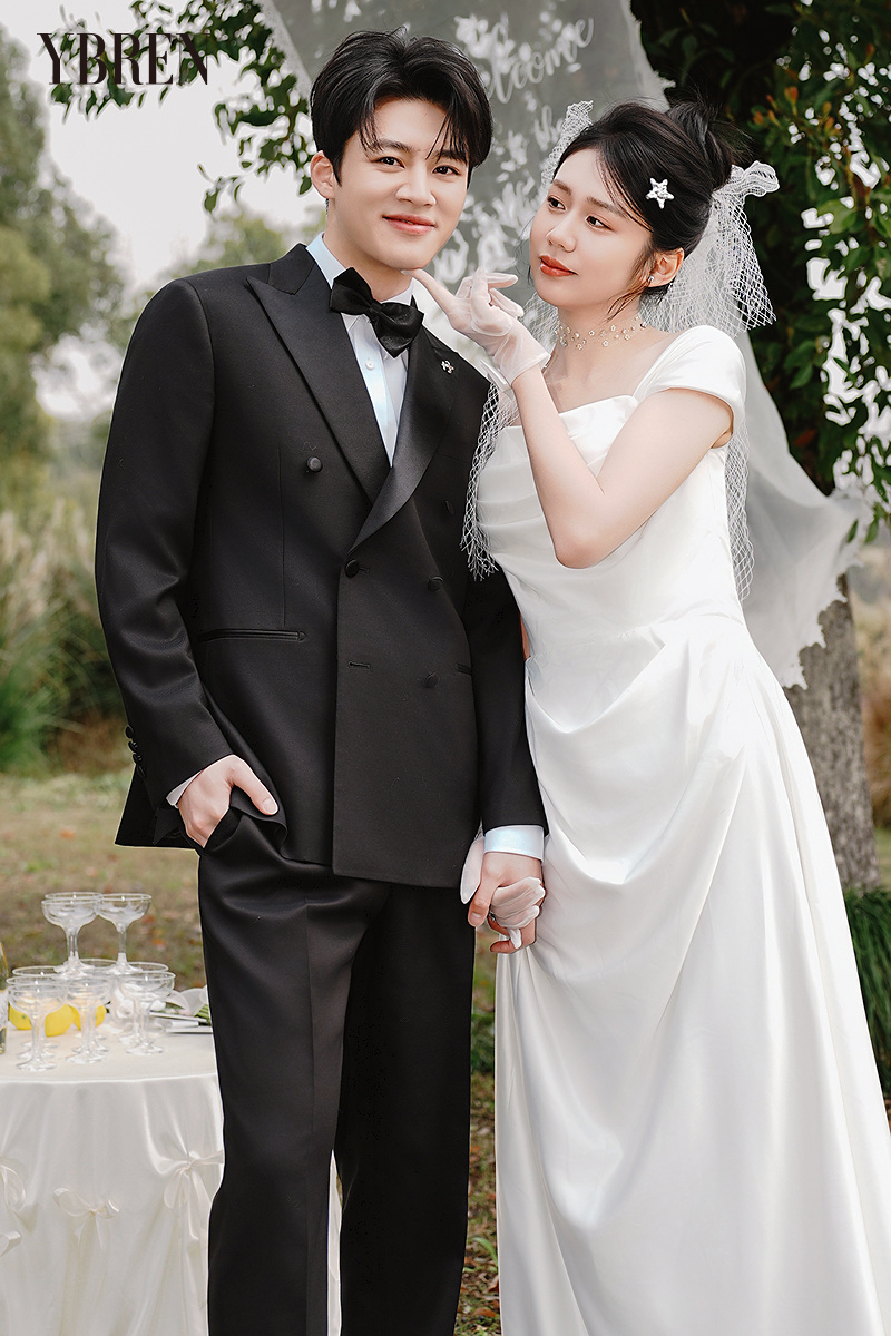 黑色羊毛混纺拼接短燕尾服二件套 国产