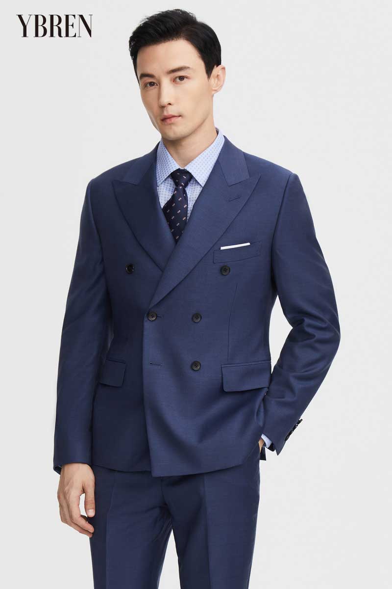 中蓝色小肌理平驳领全羊毛商务西服二件套 奢牌