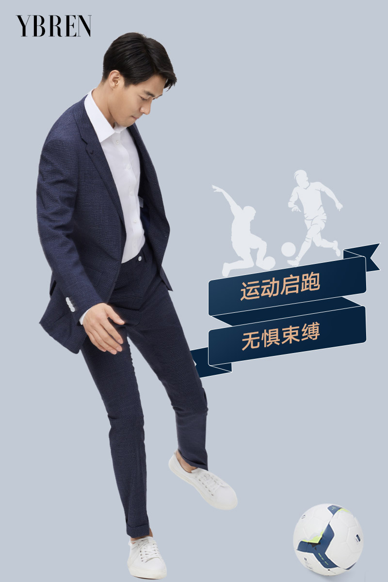 藏青色平驳领羊毛混纺运动西服两件套 精品
