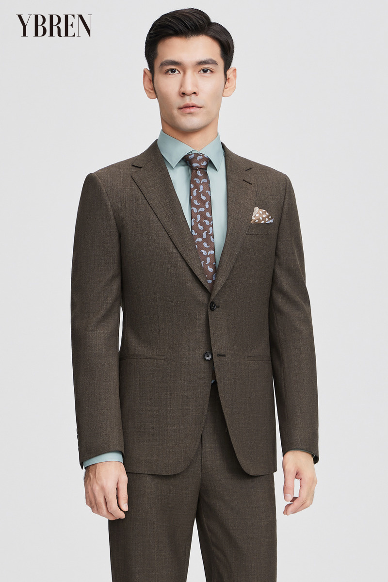深咖色平驳领羊毛混纺商务休闲西服二件套 精品