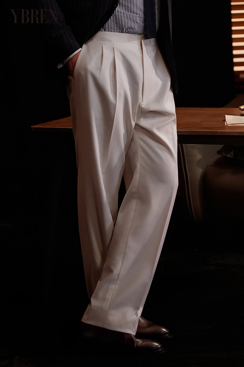白色全羊毛男士经典西裤 国产