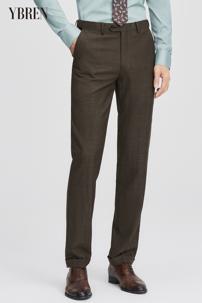 咖色平纹羊毛混纺精品西裤 国产