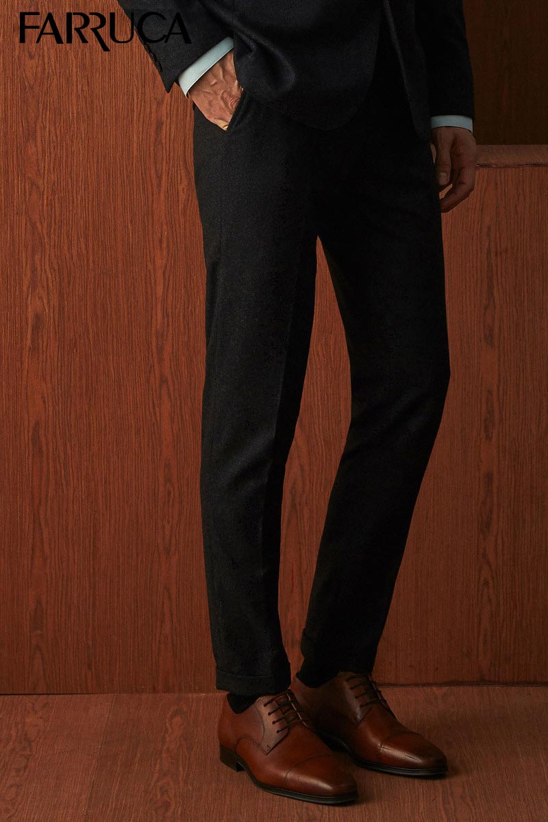 深灰色纯羊毛法兰绒高端商务经典西裤 精品