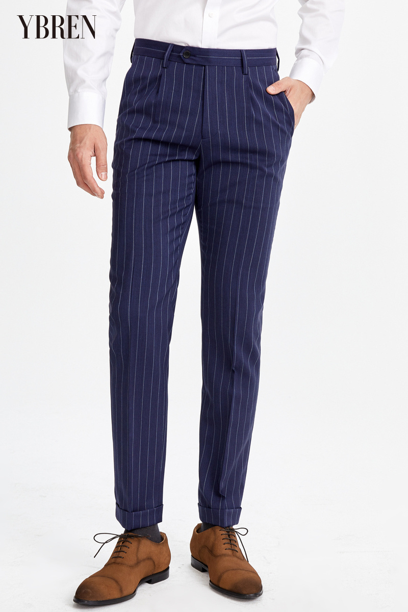 深靛蓝条纹宝剑头全羊毛精品西裤 精品