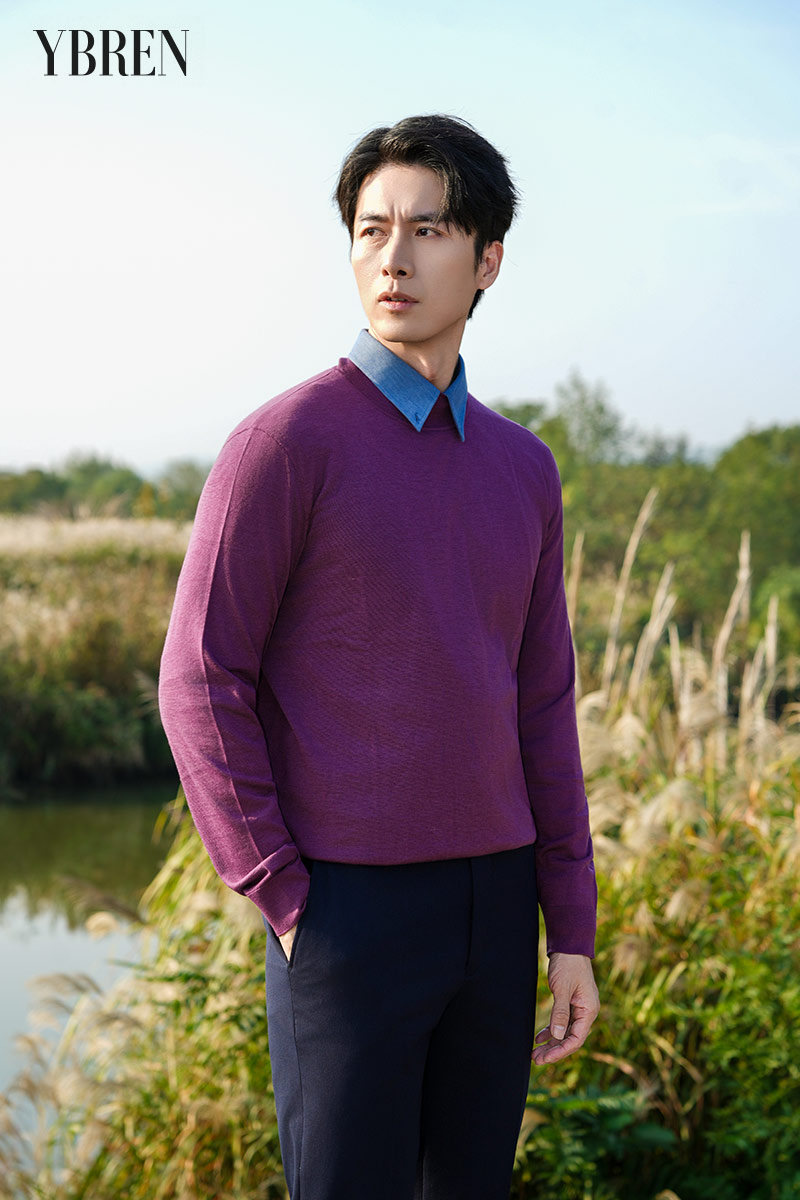 紫红色一字领抗菌内磨毛经典商务男士衬衣 国产