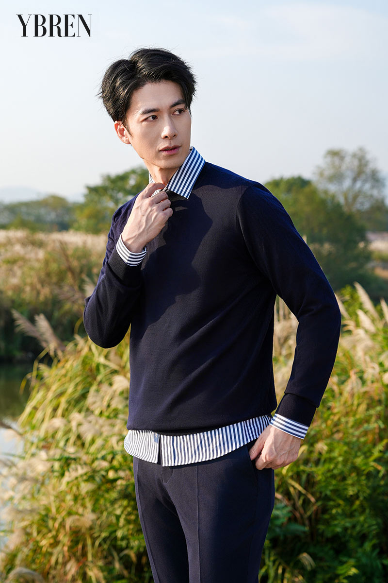 100%桑蚕丝藏青色净色高端男士商务衬衫 奢牌