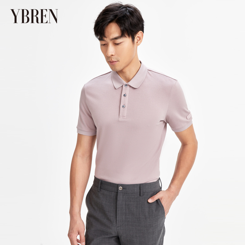 紫色扁机领桑蚕丝POLO衫 国产