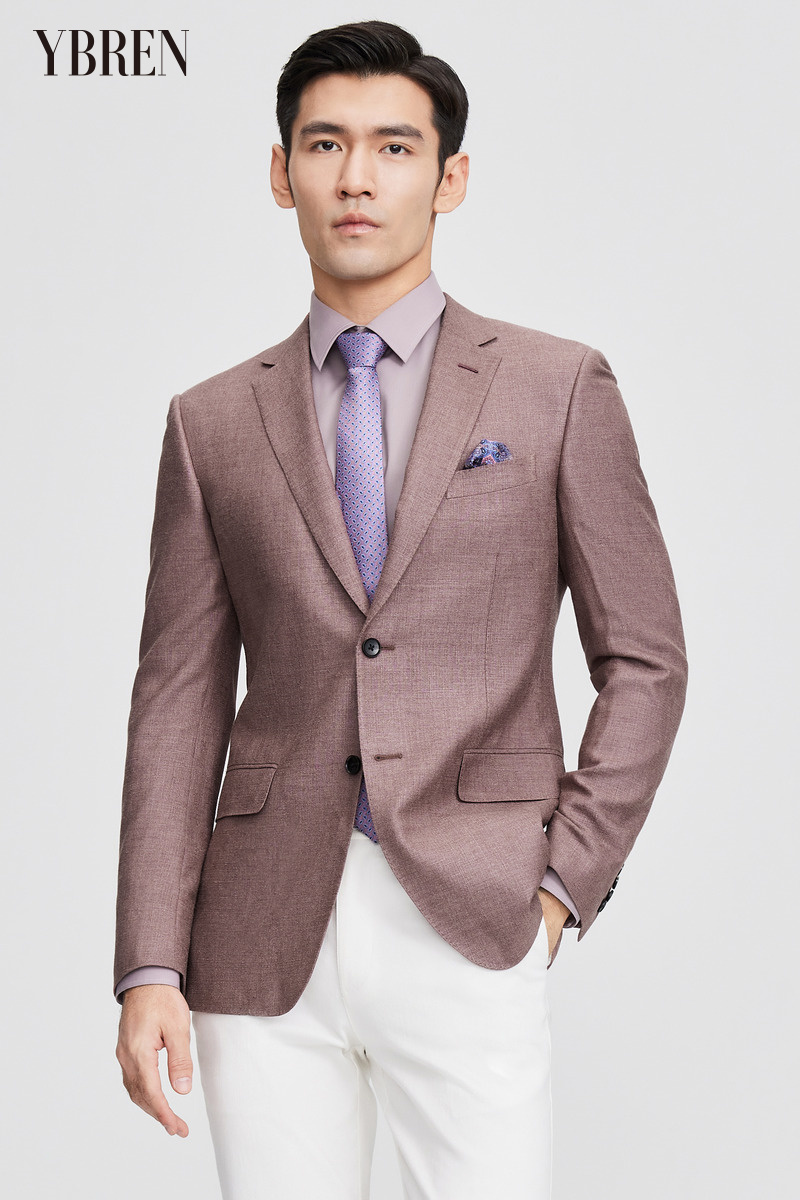 灰粉色平驳领丝毛混纺商务休闲西服上衣 精品