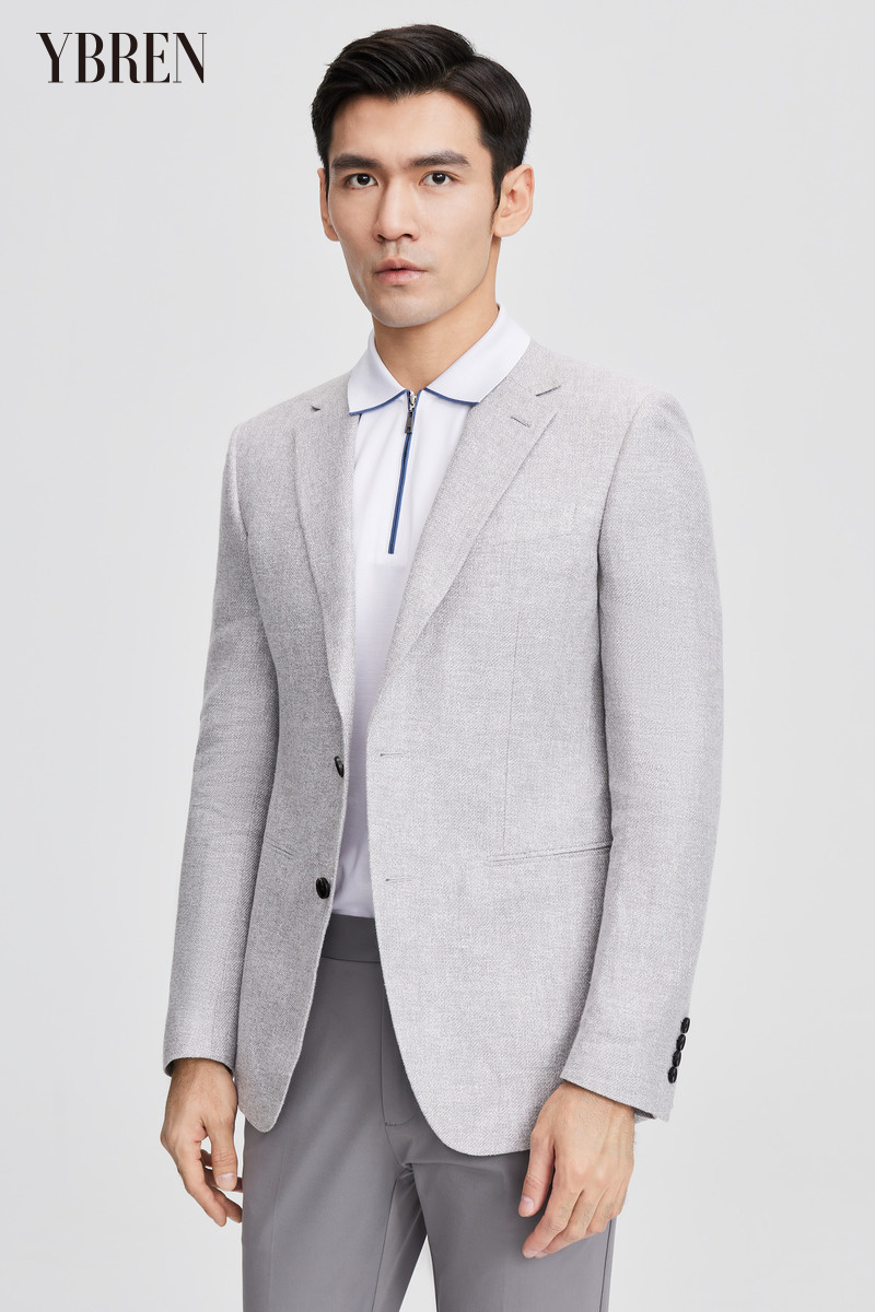 小肌理平驳领棉麻丝纺商务休闲西服上衣 精品