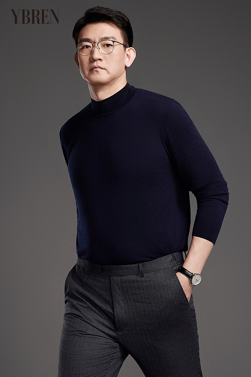浅灰色半高领男士休闲羊绒套头衫 国产
